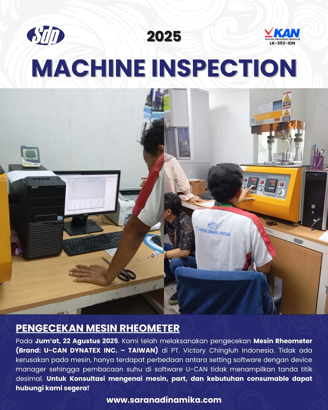 #SaranaDinamikaPratama #SDP #Rheometer #UCANDYNATEX #Inspection #VictoryChingluhIndonesia #LabSolutions #LabEquipment