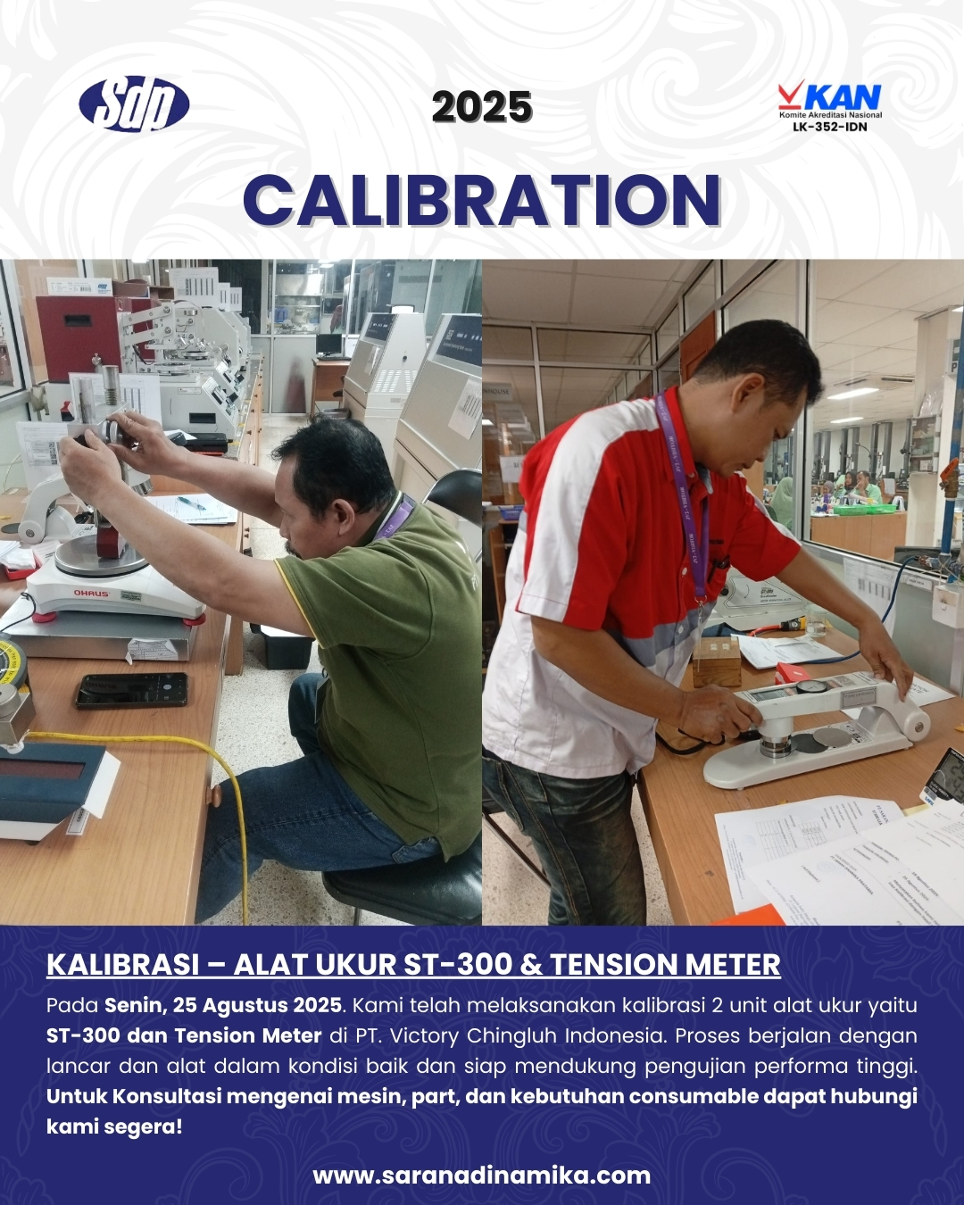 On Monday, 25 August 2025, we carried out the calibration of 2 measuring instruments, namely ST-300 and Tension Meter, at PT. Victory Chingluh Indonesia. The calibration has been successfully completed, and all instruments are functioning properly after calibration.