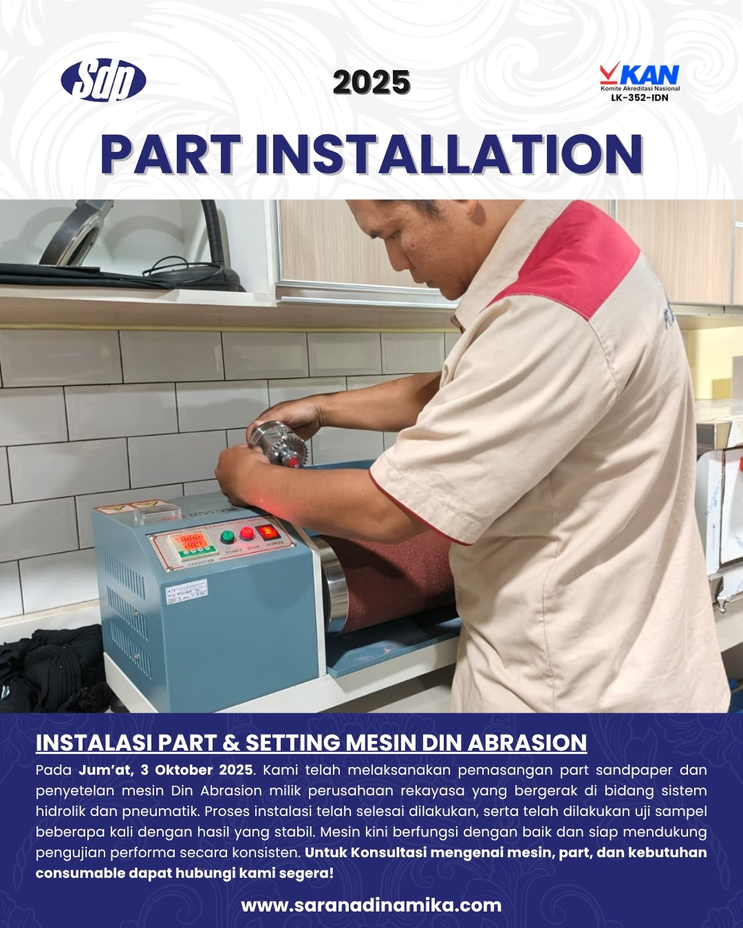 #SaranaDinamikaPratama #SDP #Installation #DinAbrasionTester #LaboratoryEquipment #Testing #EngineeringIndustry #HydraulicSystem #PneumaticSystem