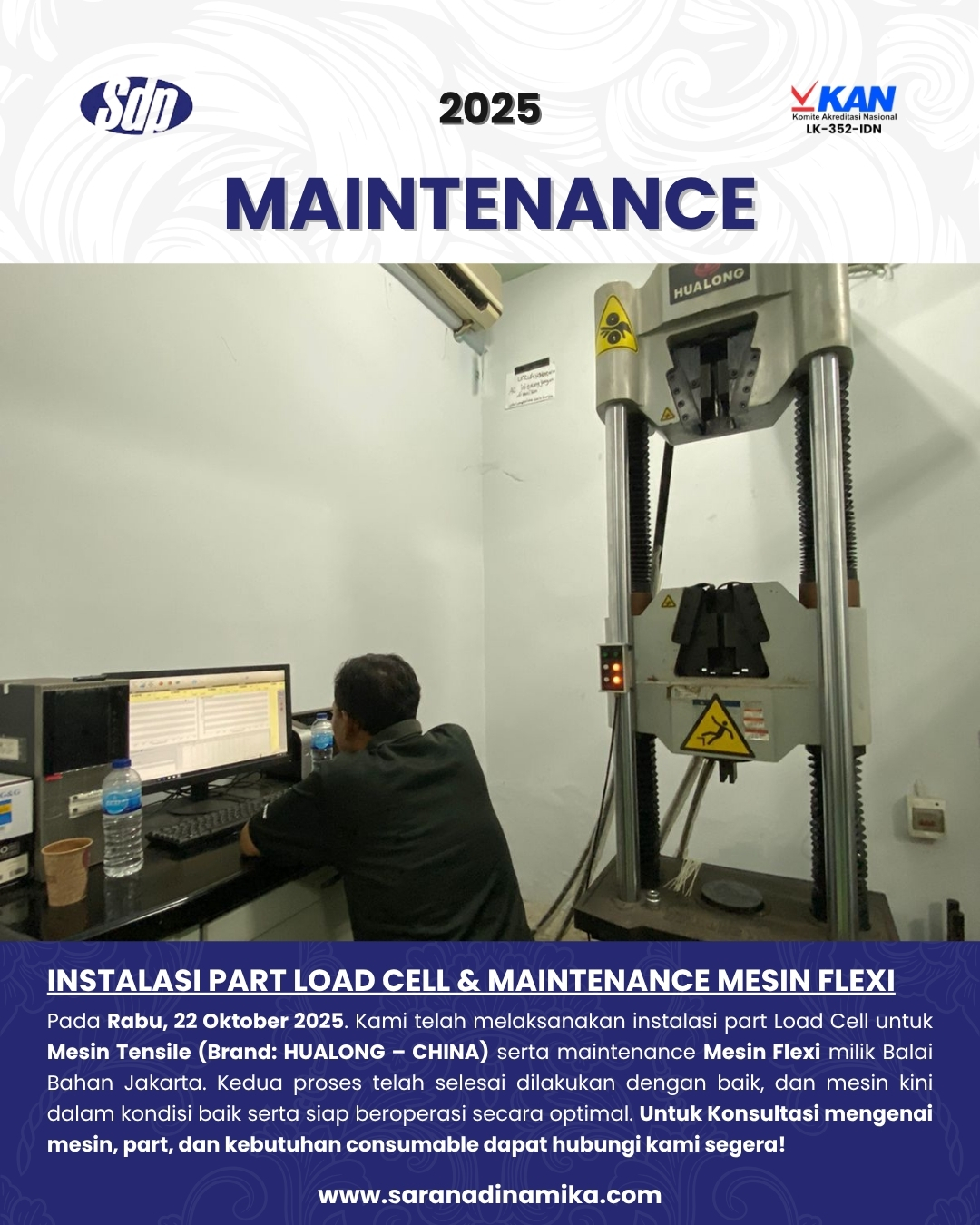 #SaranaDinamikaPratama #SDP #TensileMachine #FlexiMachine #LoadCell #Installation #Maintenance #Hualong #LaboratoryEquipment #TestingEquipment #Calibration #MaterialTesting #BalaiBahanJakarta
